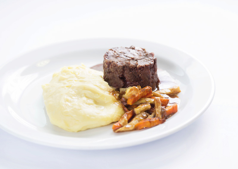 kořenovou zeleninou a máslovým bramborovým pyré nebo tradiční kuřecí