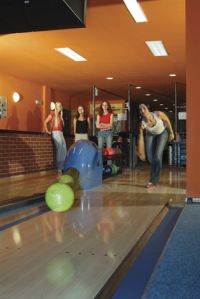 sortiment jídel a nápojů. Bowling Bar kromě bowlingových drah, kulečníku