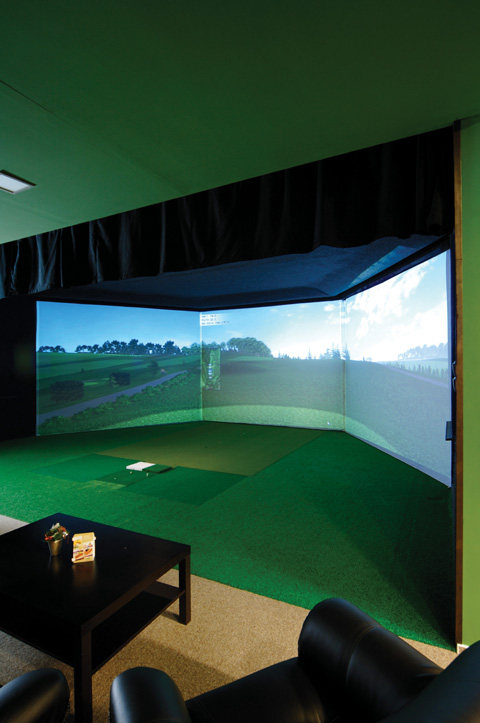 širokoúhlý panoramatický simulátor SimSurround a putting green