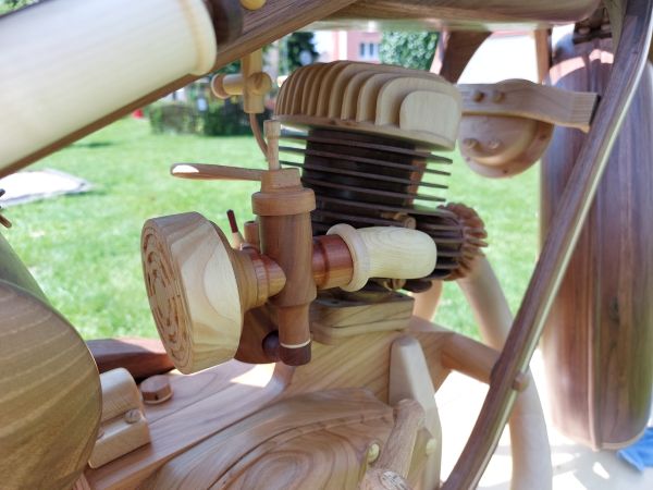 Motocykl ČZ 250 Sport vyřezaný ze 40 druhů dřeva