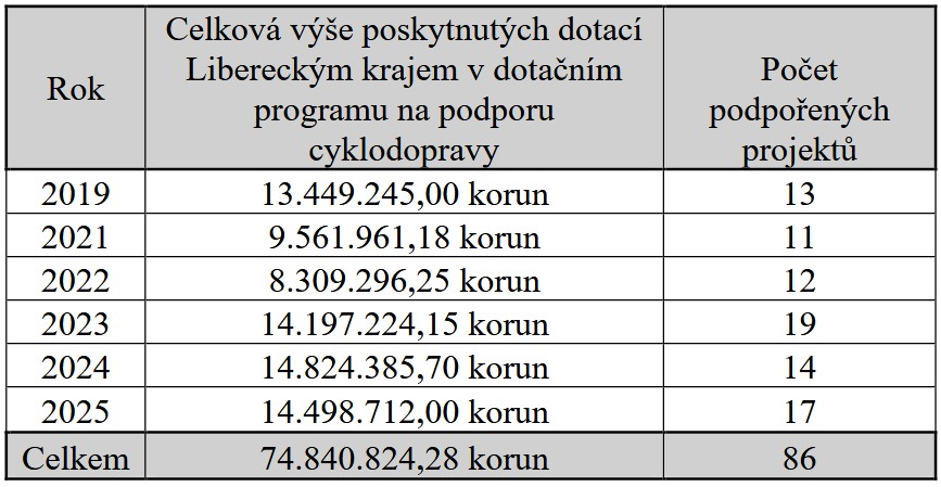 Liberecký kraj letos opět podpořil rozvoj bezpečné cyklistické dopravy.