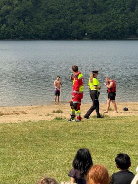 přímo na jezeře. O policejní vrtulník bohužel z organizačních důvodů