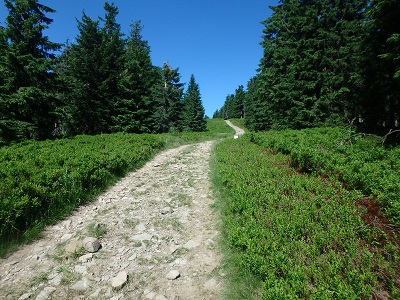 Matúňanským sedlem odkládám bágl a sbírám borůvky. Pak vesměs