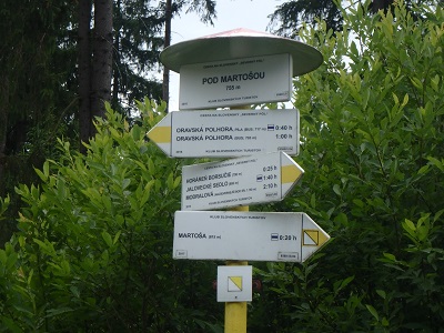 na Martošu. Ukazatel rozcestníku je tak zdařile maskovaný, že nebýt