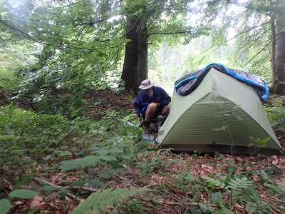 říčky Polhoranky. Hurá, kopřivy! 18.00 Bivakuji asi kilometr nad