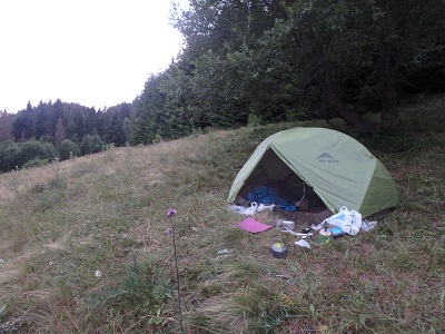 jsem vodu opravdu našel. A taky takřka vodorovný plácek pro stan.