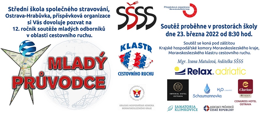 12. ročník mezinárodní soutěže Mladý průvodce pro mladé odborníky v oblasti cestovního ruchu se bude konat dne 23. 3. 2022 od 08.30 v prostorách společenského sálu Střední školy společného stravování v Ostravě-Hrabůvce, na Krakovské ul. 1095/33.