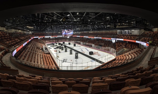 Základní kapacita 5 650 diváků při hokeji se díky výsuvným tribunám rozšíří až na více než 7 400 míst. To odpovídá poptávce po akcích regionálního i národního významu. Ekonomické analýzy předpokládají, že projekt díky multifunkčnímu využití (sport, koncerty, veletrhy, vzdělávací akce) přitáhne nové návštěvníky a vytvoří příležitosti pro místní podnikatele. Aréna je tak potenciálním katalyzátorem ekonomiky města. Díky multiplikačnímu efektu podpoří lokální ekonomiku, příjmy do veřejných rozpočtů i soukromé subjekty. Architekti zvolili řešení interiéru se dvěma patry tribun. Výsledkem je kompaktní prostor, který vtahuje diváky bezprostředně po vstupu do dění na středové ploše. Mezi prstenci tribun jsou umístěny vstupy z úrovně parku a ochoz s gastronomickým zázemím. Druhé patro tribun může být v případě komornějších akcí zataženo textilním závěsem, který zlepší akustické vlastnosti a elegantně sníží kapacitu hlediště. O podlaží výš jsou umístěny skyboxy, restaurace a terasa s výhledem. Závěsné systémy, akustické panely i variabilní osvětlení umožňují přetvořit halu v koncertní sál nebo kongresový prostor. Materiálová paleta arény je surová a expresivní – odkryté konstrukční prvky jí dávají výrazný charakter. Tribuny z prefabrikovaného pigmentovaného betonu přinášejí symbolickou červenou barvu města, hokejového klubu a fasády do interiéru. Společně se speciálně navrženými sedačkami ve třech odstínech červené jasně podtrhují vizuální identitu arény.