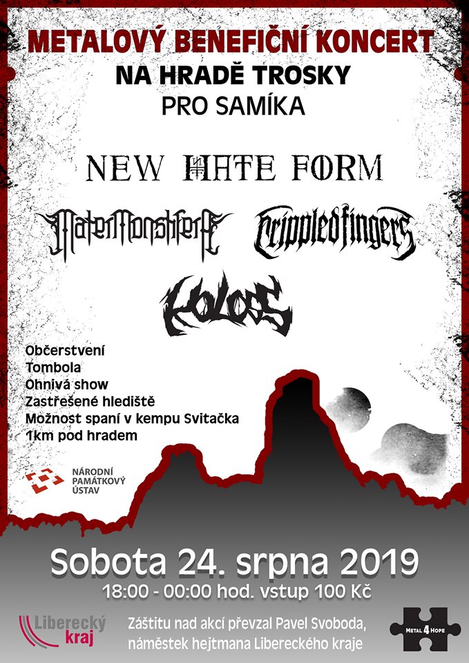 „Vstupné je symbolických 100 korun a zahrnuje vedle koncertu i prohlídku hradu Trosky. K tomu mohou diváci přispět ještě do kasičky libovolně velkou částkou,“ uvedl Jakub Viták z New Hate Form. „Doposud jsme nejvíc peněz vybrali vloni, to bylo téměř 55 tisíc korun. Ale stejně jako výtěžek je pro nás důležité, že naše koncerty lidi spojují a probouzí v nich snahu pomáhat. Jak říkáme, metal nás dělá silnými i proto, abychom pomohli těm slabším.“