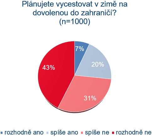 Z průzkumu dále vyplývá, že především kvůli nedostatku financí, covidovým opatřením nebo obavám z nákazy neplánuje zimní dovolenou více jak polovina Čechů (57 %). Zimní dovolenou v zahraničí pak plánuje 27 % Čechů. Více nakloněni zahraniční dovolené jsou mladí lidé 18–30 let (42 %) a lidé s nejvyššími příjmy (41 %).