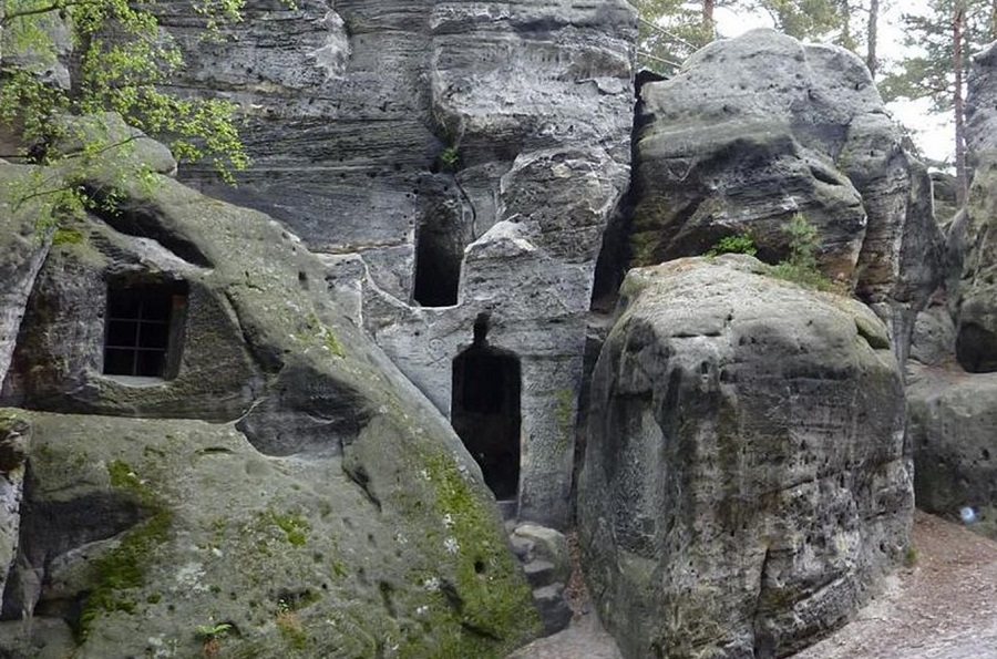 Malá Cikánská jeskyně Jeskyně je uměle vytesaná s klenutými stropy 16 metrů široká. V dřívějších dobách sloužívala jako útočiště a místo odpočinku kočovných cikánů. Nachází se asi 200 metrů na severozápad od rozcestí u Sedmi trpaslíků.