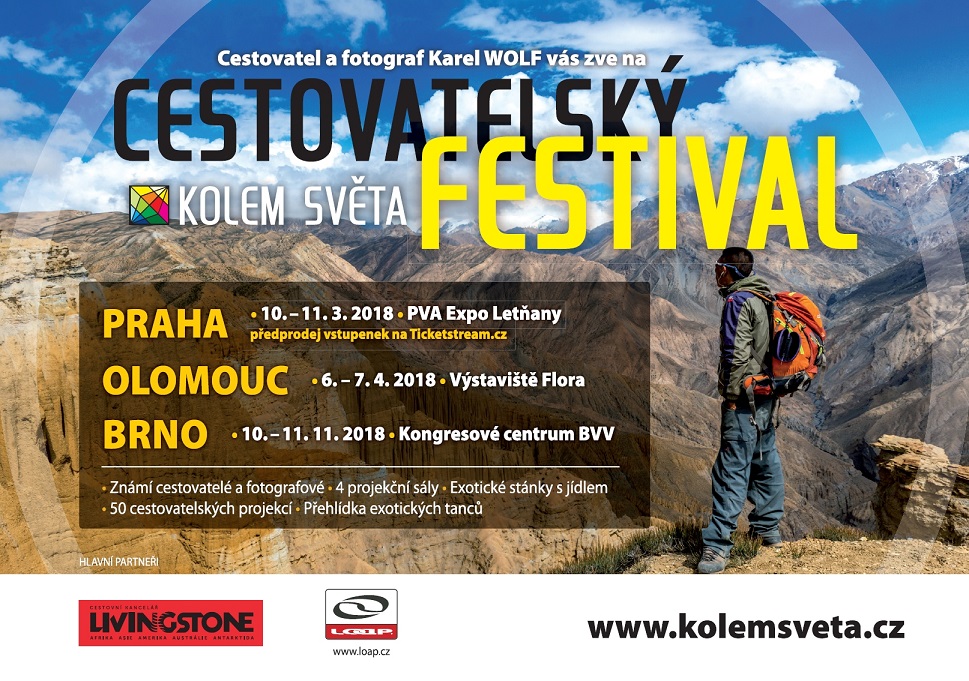 Přijďte navštívit 16. ročník největšího cestovatelského svátku - Festivalu KOLEM SVĚTA, který se bude konat v Praze 10.-11. března 2018 v PVA EXPO PRAHA v Letňanech. Nově bude festival doprovodným programem veletrhů a výstav For Caravan, For Boat a For Travel.