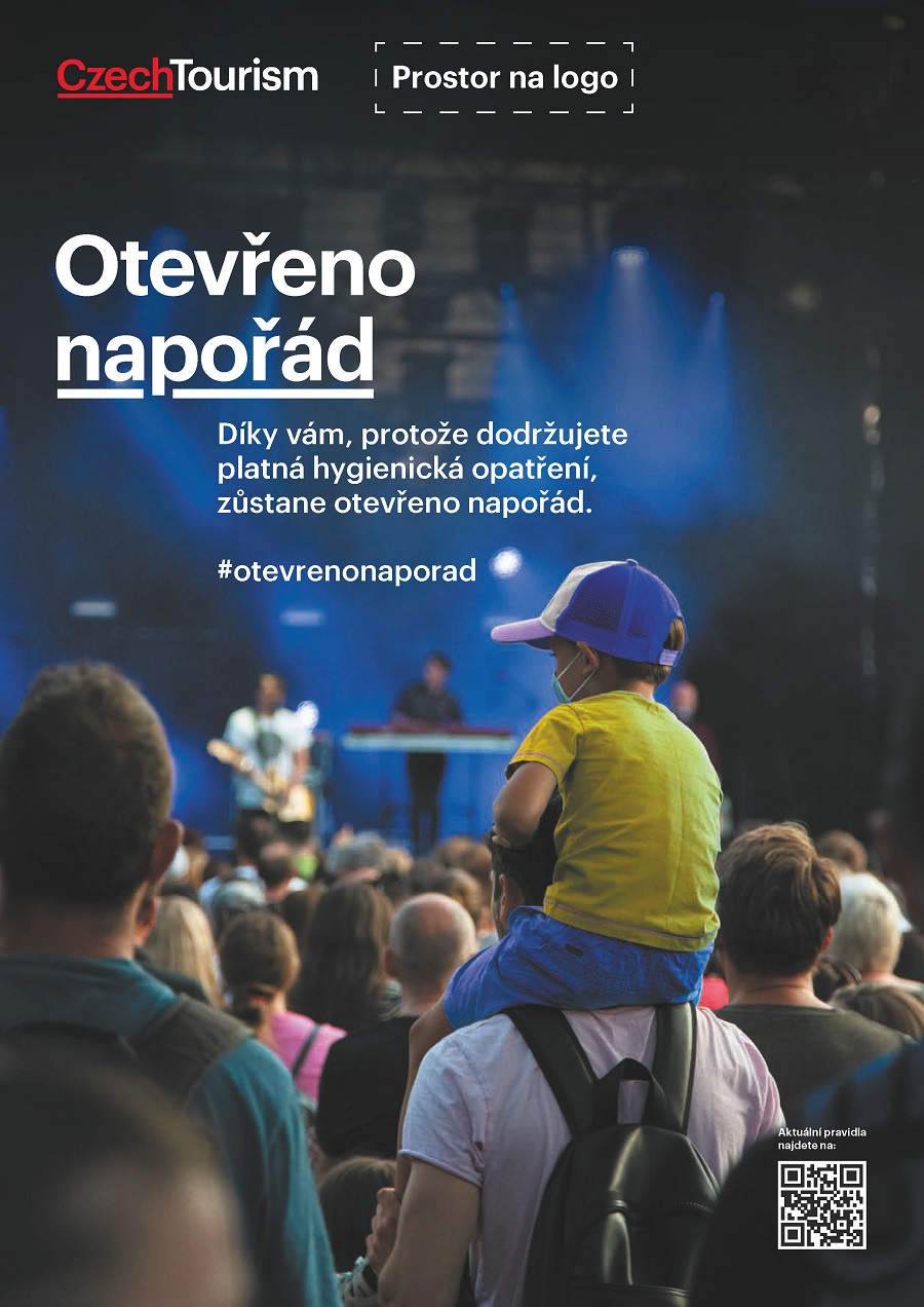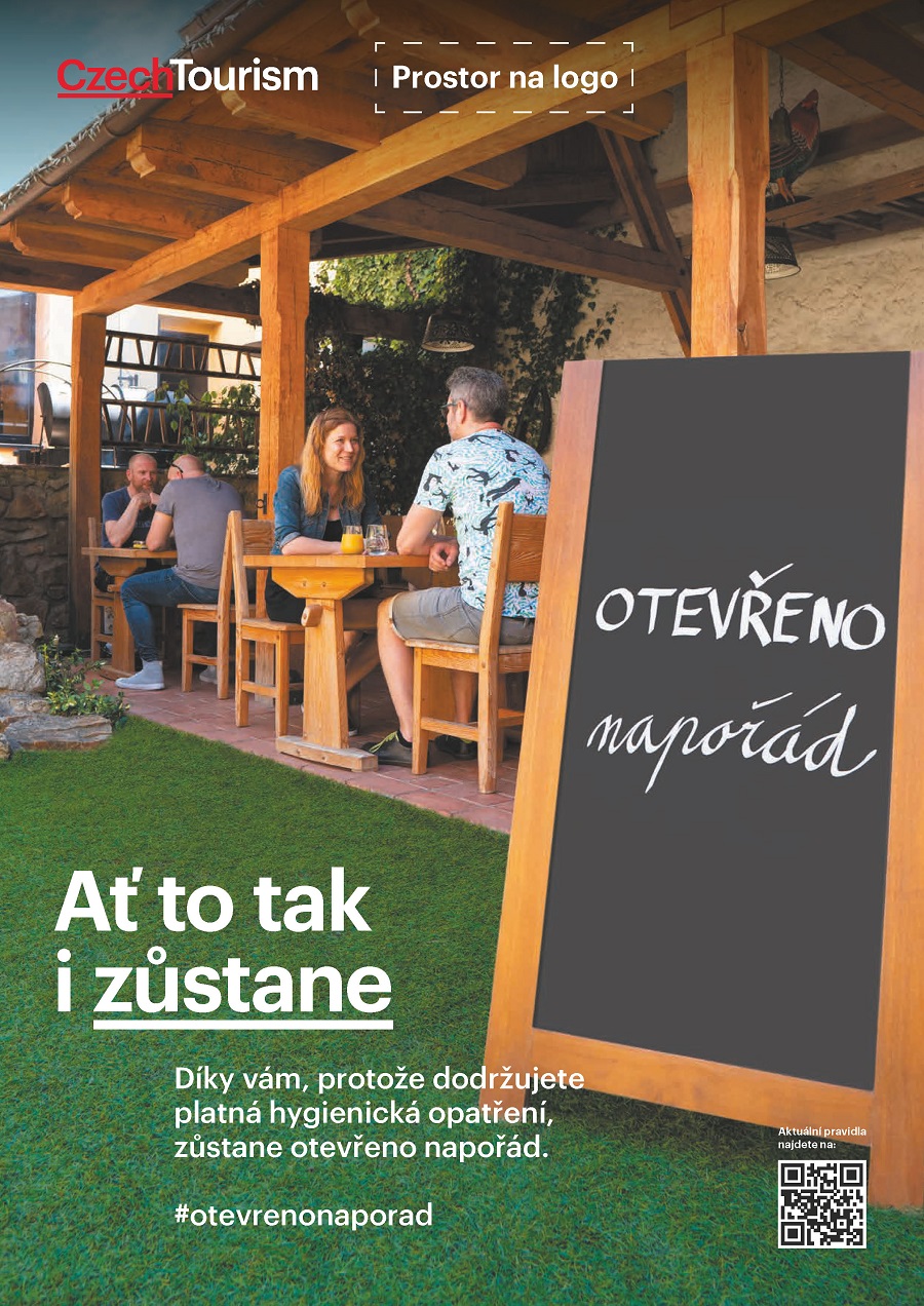 Cestovní ruch pomalu ožívá. Buďme ohleduplní, dodržujme pravidla, ať nám to vydrží a zůstane otevřeno už napořád. Myšlenka, se kterou do agentury CzechTourism přišli podnikatelé, oborové asociace a destinační organizace, a ze které se zrodila iniciativa a marketingový koncept „Otevřeno napořád“. Set podkladů pro marketingové POS materiály s kreativou od Mark BBDO, které zákazníkům děkují za dodržování hygienických opatření napříč sektorem, připravila pro podnikatele agentura CzechTourism. Ke stažení jsou ZDE nebo v brand manuálu CzechTourism.