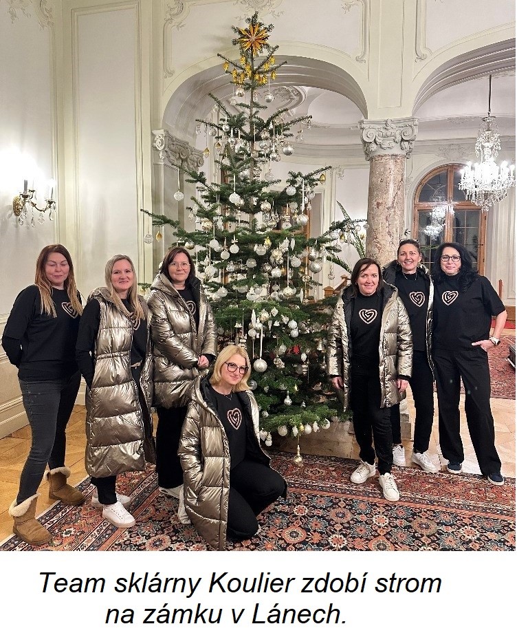 „Se sklárnou Koulier a dalšími českými sklárnami jsme navázali spolupráci již v přechozích letech. Vloni nám zapůjčili na stromeček ve stejné vstupní hale ozdoby z kolekce Nobles Baubles v barvě tiffany, a jednalo se o velkou krásu. Ozdoby ale byly zápůjčkou, a tak je opět odvezli. Tehdy vznikla myšlenka na darování ozdob zámku Lány jako součást jeho stálého vybavení,“ řekla Iveta Krupičková, ředitelka zámku Lány. „Čeští skláři nezdobili v loňském roce ale pouze na Lánech. Vyzdobili i Rožmberský palác Pražského hradu, v němž se konala výstava KŘEHKÁ KRÁSA VÁNOC. Výstava byla součástí Vánočního putování Pražským hradem, kterou pořádala Správa pražského hradu pro širokou veřejnost Rožmberský sál byl ozdoben foukanými kulatými ozdobami, volnými tvary, formami i figurkami z dílen českých výrobců, kteří patří mezi poslední nositele této tradice. Celkem bylo možné vidět téměř 4000 ozdob. Výstavu navštívilo přes 37 000 návštěvníků. Společně se Správou Pražského hradu na výstavě spolupracovaly čtyři sklárny, a to Rautis, Koulier, Glassor a Han-design. Tedy zástupci řemesla, které bylo v roce 2023 společně s dalšími sklářskými technikami zapsáno na reprezentativní seznam Unesco. Mezi nimi má výjimečné postavení výrobce foukaných skleněných perliček, manufaktura Rautis s.r.o., která pro perlařské řemeslo z Poniklé s tradicí od roku 1902 získala samostatný zápis na Reprezentativní seznam nehmotného kulturního dědictví lidstva UNESCO již v roce 2020,“ dodává Iveta Krupičková.