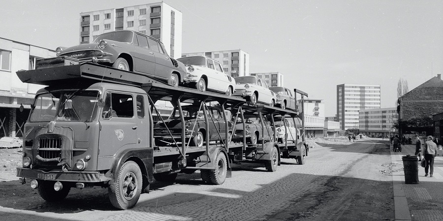 Legendární Škoda 1000 MB, tzv. embéčko, znamenala v roce 1954 zlom nejen v českém automobilovém průmyslu, ale i v rozvoji Mladé Boleslavi. V šedesátých letech vznikla nová továrna, která umožňovala sériovou výrobu 400 až 500 vozů denně. Více než polovina ze 443 141 vyrobených vozů, cenově dostupných široké veřejnosti, se prodala do západního Německa, Rakouska a Velké Británie a podnik se tak stal důležitým zdrojem zahraničních příjmů státu. Pro zaměstnance automobilky bylo potřeba zajistit nové bydlení, a tak byla pod vedením hlavního architekta Osvalda Döberta zahájena rozsáhlá bytová výstavba na náměstí Republiky, která představovala 1 880 bytů pro 7 420 obyvatel.
