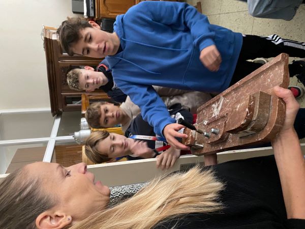 Od vedoucí nábytkové banky Pavly Campodonicové si žáci vyslechli informace, jaké to je zakládat organizaci, jak se tvoří logo nebo jak organizačně zvládnout, aby se nábytek dostal od dárců k příjemcům této materiální pomoci. Také se zapojili do skládání dřevěného puzzle vyrobeného z vyřazeného kusu nábytku. Vtipné byly jejich reakce, když hádali, k čemu sloužily některé exponáty – jednalo se například o kalamář nebo o sifonovou láhev na výrobu sodovky. S jistou nápovědou se jim vždy využití předmětu podařilo odhalit.