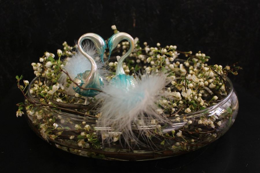 Jedná se přitom o náročnou, ale krásnou práci. Tělo skleněné ozdoby labutě se nejprve vyrobí ve formě. Následuje vytažení krku, hlavy a případně na závěr korunky. To je na výrobě labutě to složité a těžké. Důležitý je způsob nahřátí skla tak, aby se podařilo oddělit hlavu a tělo. Vyfouknutí labutě trvá 3-4 minuty. Následuje zdobení. Běžná ozdoba koule se přitom vyfoukne zhruba do dvou minut. Sklář musí nejprve umět vyfouknout klasický kulatý tvar koule, pak teprve může pokročit k výrobě labutí. Nejprve zvládnout výrobu těla ve formě a teprve potom se učí proces vytažení krku. Dobrý sklář vyrobí za jednu hodinu 2 tucty labutí. Jejich výrobu ale nezvládne každý. Ti, kteří ji ovládnou, se dají právem považovat za mistry svého oboru. Některé labutě mají ovšem i korunku. To je další časově náročný krok a dělá se úplně na závěr, kdy se musí nahřát hlava labutě a skleněná tyčinka. Sklář tvaruje každý hrot korunky zvlášť, a to odtažením skleněné tyčinky od hlavy. Následuje stříbření labutí, smáčení a malování. Práce je to unikátní a krásná, tak jako labutě samy.