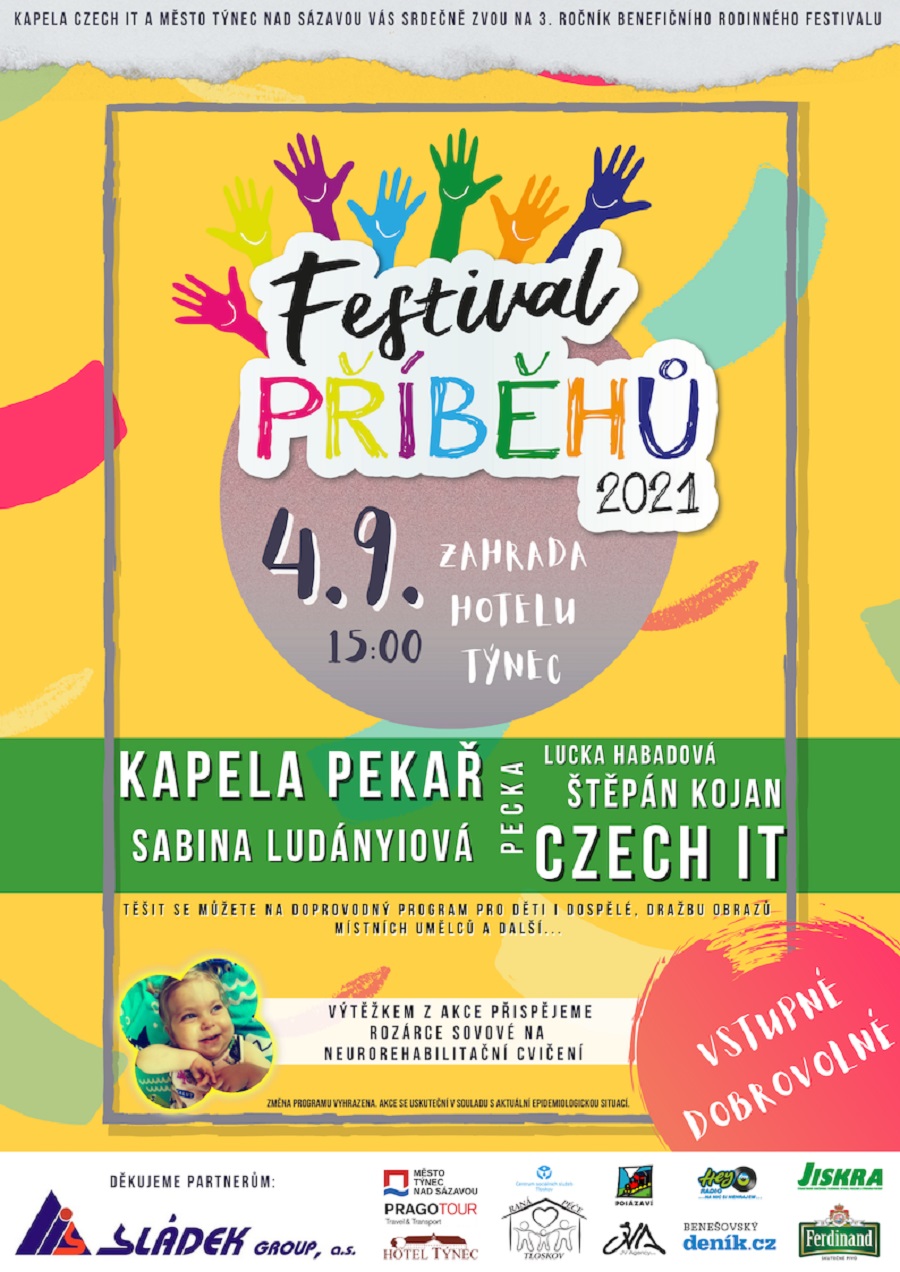 Malé Rozárce Sovové, která do života vstoupila se závažnými neurologickými obtížemi, pomůže výtěžek třetího ročníku Festivalu Příběhů. Na zahradě Společenského centra Týnec v Týnci nad Sázavou ho 4. září pořádá kapela Czech It ve spolupráci s městem. Vedle koncertů je připraven doprovodný program pro děti i dospělé nebo dražba obrazů místních umělců.