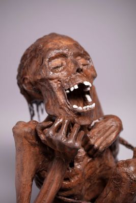 Třebaže během své kariéry pracovala sochařka Tereza Eisnerová (*1981) s celou řadou klasických i současných materiálů a jejich kombinací, v posledních letech je její jméno nejčastěji skloňováno ve vztahu ke keramice, a především k porcelánu. Ten Terezu Eisnerovou fascinuje svou jemností, ušlechtilostí, hladkým povrchem, tvrdostí a zároveň křehkostí. Postupně si v tomto médiu rozvinula zcela originální rukopis, výrazně posouvající hranice běžně využívaných možností materiálu. Ačkoliv má na svém kontě figury v životní velikosti i velkoformátové sochy a reliéfy, v porcelánu se věnuje drobné až miniaturní plastice, v níž může naplno vyniknout potenciál materiálu. „Autorka je se svou virtuózní prací v miniaturním formátu i s výrazně expresivní tematikou mumií a dalších makabrózních výjevů v kontextu české sochařské scény skutečným solitérem,“ doplňuje kurátorka Adriana Primusová. Projekt Mumie v krajkách, připravený pro výstavní prostor Whitebox, vůbec poprvé představí tuto část autorčiny volné a designové tvorby v reprezentativním celku. Návštěvníci jej mohou zhlédnout do 22. února 2026.
