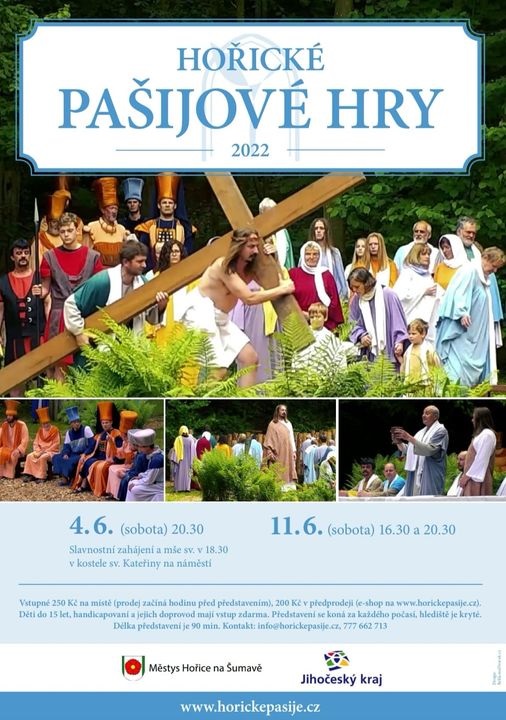 První dva červnové víkendy jste zváni do Hořic na Šumavě na jedinečné představení Hořických pašijových her. V krásném přírodním amfiteátru s krytým hledištěm Vás čeká nezapomenutelný zážitek.