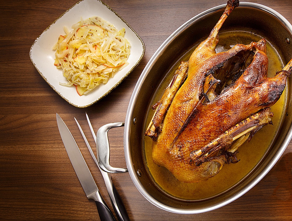 Potom jsou tu Vánoce, které, ač husa nebývá hlavním tématem tabulí - tedy ne o Štědrém večeru - přítomnost husí pečeně na stole dodává hodování velikosti a důstojnosti. A nemusí to nutně být vždy s vínem.