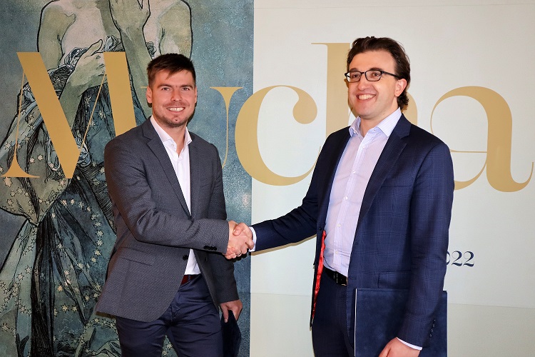 Dokument o spolupráci podepsali ředitel České centrály cestovního ruchu – CzechTourism Jan Herget (nalevo) a ředitel Nadace Mucha Marcus James Mucha (napravo). Týká se společné prezentace a propagace uměleckého díla Alfonse Muchy jako součásti kulturního dědictví Česka doma i v zahraničí.