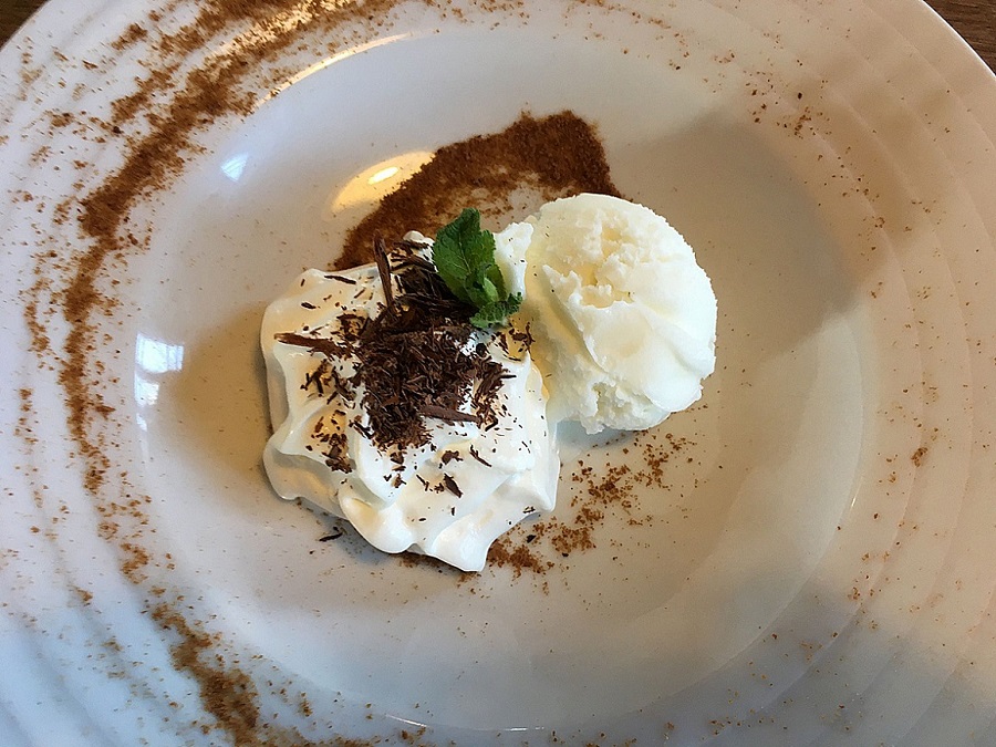 - kozí zmrzlina s čerstvou šlehanou smetanou a strouhanou čokoládou