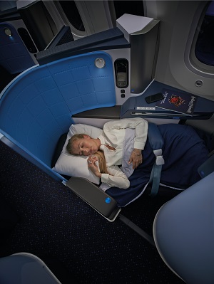 KLM nabízí plně sklopné sedadlo: • na 85 % dlouhých letů, • na všech letadlech Boeing 747, 787, 777-200 • od dubna 2017 i na 777-300s. • A330-200 budou létat s plně sklopnými sedadly do konce roku 2018