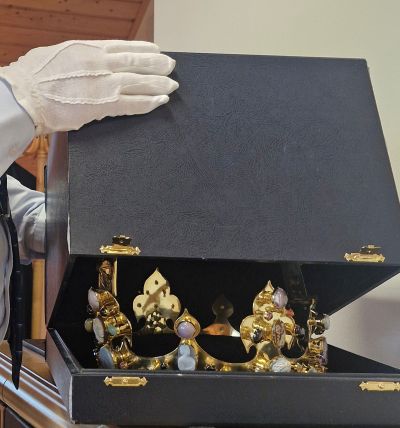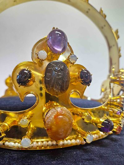 Pokud jste zmeškali svatováclavskou slavnost 28. září 2025 od 10:00 do 18:00, o prohlídku výstavy nepřijdete. Výstava Korunovační klenoty lucemburských panovníků potrvá až do 28. února 2025. Vstupné můžete pořídit online, nebo přímo v infostánku kláštera. Klášter minoritů Praha, Malá Štupartská 635/6, Praha 1. Připravila Eva Mráčková, foto: Agentura Helas.