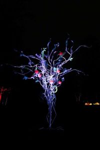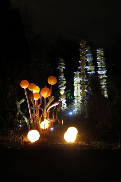 Výstava Křišťálová zahrada ve dne představuje unikátní instalace nasvícené slunečními paprsky (pokud na ně budete mít štěstí) – a svými barvami dokáže rozzářit i pošmournější počasí. Naprostou fantazii a pohádku zažijete při večerních prohlídkách, kdy se přidá působivé nasvícení stálými i měnícími se barevnými tóny, světlo hraje i uvnitř některých objektů, které tak oproti pohledu ve dne nabydou úplně fantaskní vzezření.