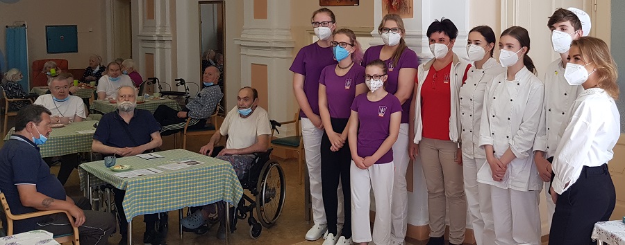 Projektem Pečeme s úsměvem překvapili seniory v pečovatelském domě v Božicích vyučující a žáci oboru Kuchař-číšník ze SOU a SOŠ SČMSD, Znojmo, s.r.o.