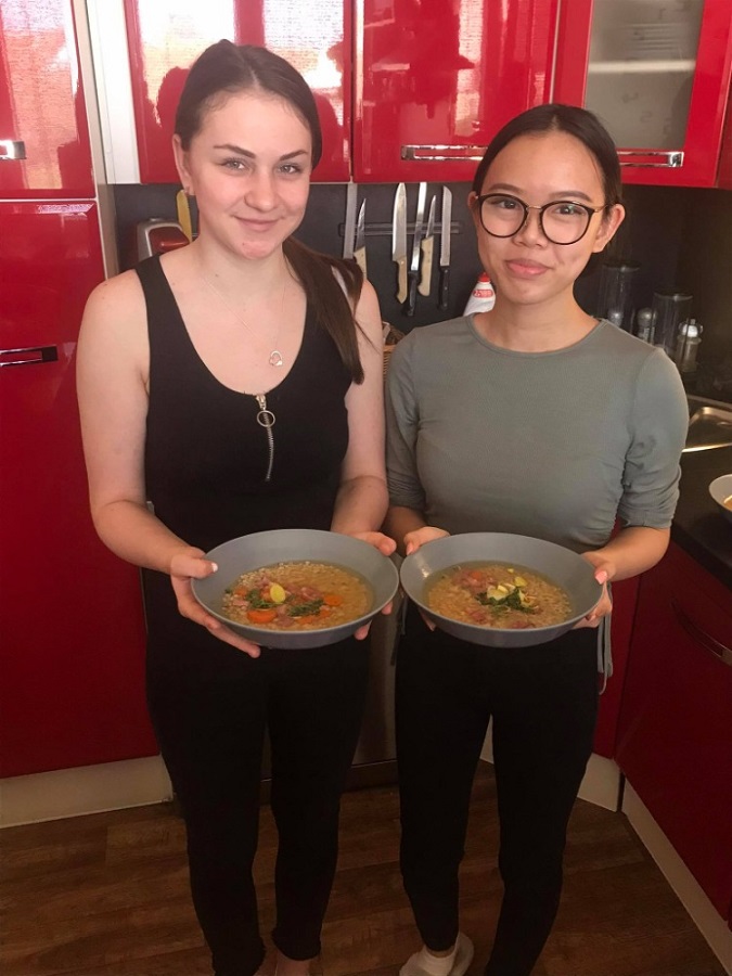 Během distanční výuky se žákyně prvního ročníku obor Kuchař-číšník zúčastnily projektu, který byl zaměřen na typické české pokrmy. Lenka Budišová, Natálie Schusková, Nela Polášková a Simona Wirglerová ze třídy KČ1.A si zvolily tři české pokrmy, které připravily doma. Vše průběžně fotily a natáčely, a protože je třeba se připravovat na komunikaci s návštěvníky ze zahraničí, zpracovaly finální powerpointovou prezentaci i v anglickém jazyce.