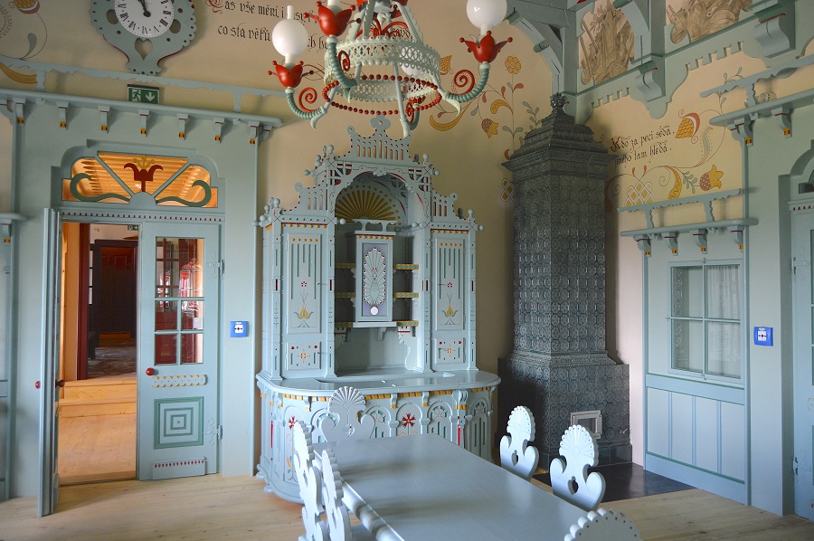 Obnova Libušína se neobešla bez změny vytápění na tepelná čerpadla a zajištění hasicího zařízení. V nejcennější části interiéru (jídelně) je plynové stabilní zařízení. Velmi náročný a zároveň unikátní způsob řešení, který se používá u muzejních archivů a expozic s archiváliemi, kde nelze hasit konvenčním způsobem s využitím pěny nebo vody. „Inertní plyn vpuštěný do místnosti sníží procento kyslíku a tím zamezí hoření. Ve střešním plášti šindelové střechy jsou naopak vyskakovací hlavice vodního systému, které slouží pro postřik fasád a povrchu střech. Aby obvodový plášť roubenky správně těsnil a byl nepropustný, byla vnitřní strana obvodové konstrukce opatřena mezivrstvou speciální fólie, tzv. moderní parozábranou,“ popisuje Svěrek zabezpečení Libušína. Celá budova je také opatřena požárními čidly a hlasovým hlášením.