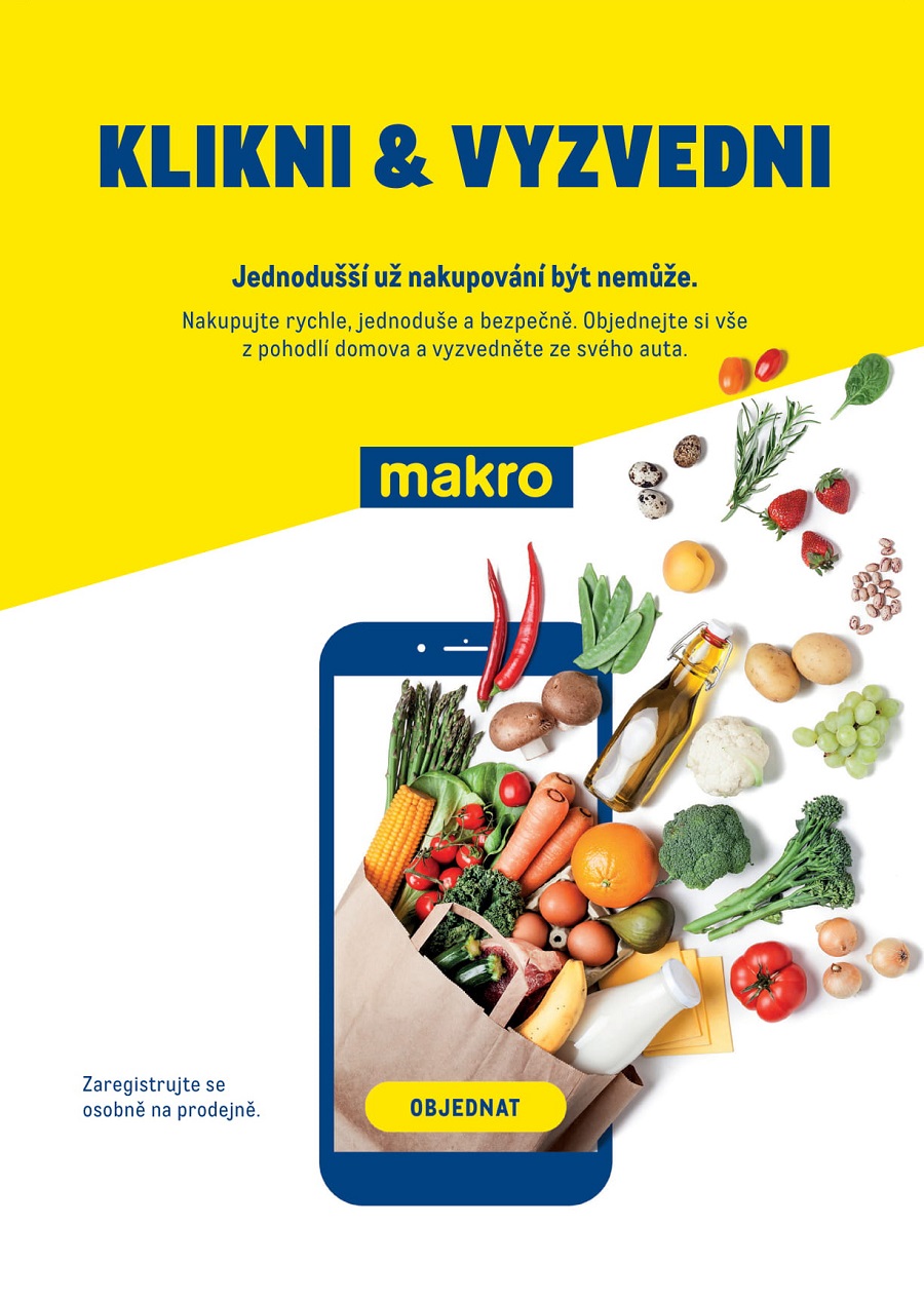 Velkoobchod MAKRO Cash & Carry ČR představuje novou službu Klikni a vyzvedni, jejíž cílem je zajistit jednoduché, rychlé a zejména bezpečné nakupování. MAKRO chce tímto krokem šetřit svým zákazníkům čas a zároveň zajistit plynulé, a hlavně bezpečné vánoční nákupy. Služba je od pondělí 7. prosince dostupná na všech třinácti prodejnách v České republice. Jedná se o testovací provoz do konce roku a funguje výhradně v režimu B2B.