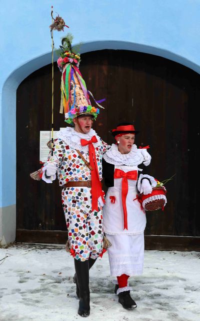 „Tradiční masopustní obchůzku na Veselém Kopci předvedou obyvatelé z Vortové. V 10.00 hodin bude před statkem z Mokré Lhoty slavnostně uděleno povolení k obchůzce, tento obřad bude zopakován ještě jednou ve 13.00 hodin, následně průvod masek vykročí mezi jednotlivé roubené objekty. U každé roubenky masky zatancují obřadní kolečko. Zblízka uvidíte všechny tradiční masky: strakatého, ženu, turky, slaměné, rasa s kobylou, kominíky i kramáře. Během obchůzky se však musíte připravit i na jejich žerty, ke kterým od pradávna patří např. pomazání obličeje zvláštním mazadlem,“ upřesnila Ilona Vojancová, vědecko-výzkumný pracovník Muzea v přírodě Vysočina.