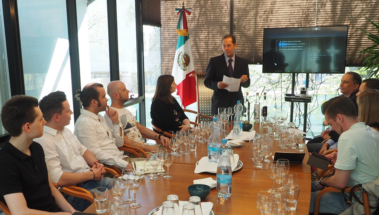 „Mezcal prolomil zdi a hranice a postavil mosty, přátelství a strategické aliance“, bylo mottem prezentace mezcalu. Mexiko je domovem víc než dvou stovek druhů agáve. Zhruba ze třiceti druhů zelené odrůdy se vyrábí mezcal. Prezentaci "Mezcal Degustace" pořádalo Velvyslanectví Mexika ve spolupráci s Českou barmanskou asociací a Asociación Pro-Cultura de Mezcal, A.C. 18. dubna 2018 na Velvyslanectví Spojených států mexických v Praze. S výrobním procesem, rozpoznáváním druhu a klasifikací mezcalu české barmany a další účastníky prezentace seznámil Master Mezcalier pan Sergio Inurrigarro.