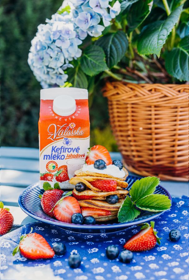 První červnový den si připomínáme MEZINÁRODNÍ DEN DĚTI a zároveň DEN MLÉKA. Protože jsou mléko a sýry pilíře zdravé výživy a jedná se o velice vhodnou potravinu nejen pro děti, je toto spojení více než příhodné. Mléko je nejen výživově hodnotná potravina, ale i nápoj. Denní spotřeba litru mléka plně pokrývá potřeby esenciálních aminokyselin i vápníku, a to tím nejlevnějším způsobem. Sortiment mléčných výrobků Mlékárny Valašské Meziříčí zahrnuje zejména jogurty, ať již smetanové či polotučné, dále pak čerstvé mléko či kysané mléčné nápoje. Vyrábí rovněž i výrobky v BIO kvalitě. Pro Den dětí přichází mlékárna s tipem na lahodné lívance z Kefírového jahodového mléka. Lívance můžeme přichystat buď my sami nebo můžeme tento recept naučit i naše děti. Budou mít určitě velkou radost z tohoto výborného pokrmu a také z toho, že se můžou něco nového naučit.