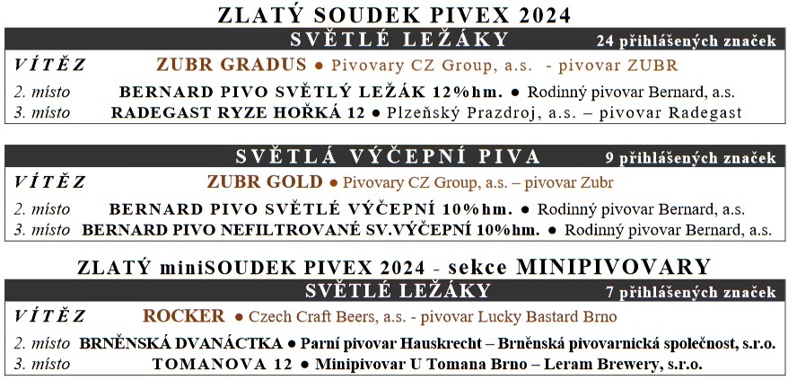 Na 32. Galavečeru pivovarníků a sladovníků České republiky byly 2. dubna v OREA Congress Hotelu Brno vyhlášeny výsledky soutěží PIVEX 2024.