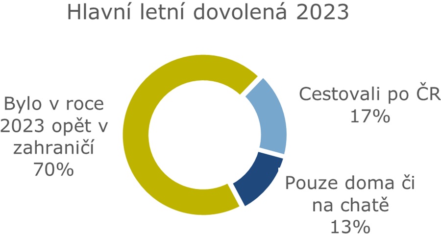 Průzkum pro ERV Evropskou pojišťovnu ukázal, že 70 % těch, kteří byli v roce 2022 na dovolené v cizině, se tam podívalo i následující rok. Ostatní tentokrát zůstali v Česku. 17 % cestovalo po tuzemsku a 13 % trávilo dovolenou doma či na chatě.