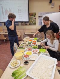 „Naši žáci měli možnost přiblížit se také Itálii, kdy jsme se věnovali výrobě několika druhů těstovin. Ravioli, Papardelle, Penne, Gnochi, spaghetti, poslední jmenované pak žáci připravili v pokrmu Carbonara. Nechyběla samozřejmě příprava omáček,“ dodala Mgr. Michaela Bednaříková.