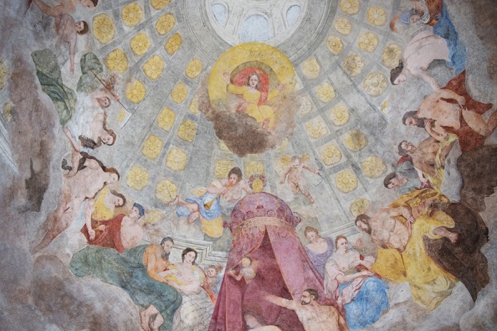 Nově zrestaurovaná část fresky Čajového pavilonu