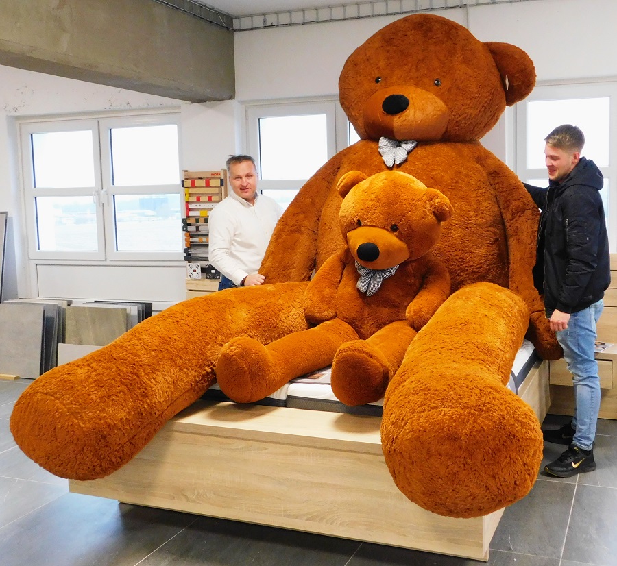 Pelhřimovské Muzeum rekordů a kuriozit sice vystavuje ve své expozici s názvem Zlaté české ručičky obřího čtyřmetrového „medvídka KUKYho“, ale v těchto dnech jeho komisaři zaregistrovali plyšového medvěda ještě většího a hlavně mohutnějšího. Absolutně největšího plyšového medvěda u nás teď mají ve spánkovém studiu v Pomněnicích u Benešova. Držitel nového českého rekordu má na délku 430 cm a váží 70 kg. Zvětšenina tradiční dětské hračky, která je dílem Vlastimila Bejbla, má obvod přes břicho 333 cm, rozpětí „předních končetin“ 306 cm a délku zadních nohou 205 cm. Oči (speciálně dovezené z Německa) mají průměr 5 cm. Výplní je duté vlákno.
