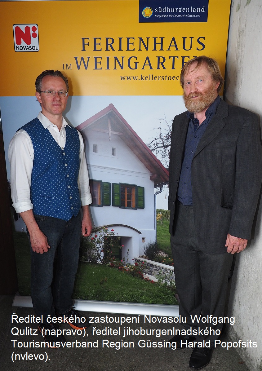 S ředitelem českého zastoupení Novasolu Wolfgangem Qulitzem a ředitelem jihoburgenlnadského Tourismusverband Region Güssing Haraldem Popofsitsem se potkáváme v Německu v Drážďanech na prezentaci jihoburgenlandského vinařského regionu Güssing, v němž cestovní kancelář Novasol nabízí ubytování na vinicích v obytných částech malebných vinařských domků, jejichž spodní část tvoří vinný sklep.