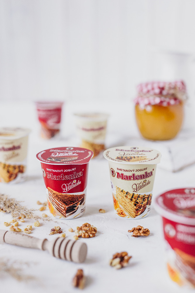 Chuť medových dortů Marlenka si podmanila doslova celý svět. Majitel společnosti byl oceněn prezidentem České republiky medailí Za zásluhy I. stupně. Cestu si našla až do Mlékárny Valašské Meziříčí, kde se po měsících testování spojila kvalita obou výrobků a jejich dokonalé chutě. Na trh tak přichází zcela nové jogurty, a to ve dvou variantách: Smetanový jogurt z Valašska MARLENKA klasická a Smetanový jogurt z Valašska MARLENKA s kakaem. Jedná se o spojení tradičního smetanového jogurtu z Valašska s medovým dortem. „Díky tomu si je budou moci příznivci obou výrobků řádně vychutnat. Snoubí v sobě tradici, poctivost a mistrovské umění každého z obou řemesel. Neobsahují žádné umělé konzervanty a barviva,“ uvádí Zuzana Pavelková, Marketing Manager Mlékáren Valašské Meziříčí.