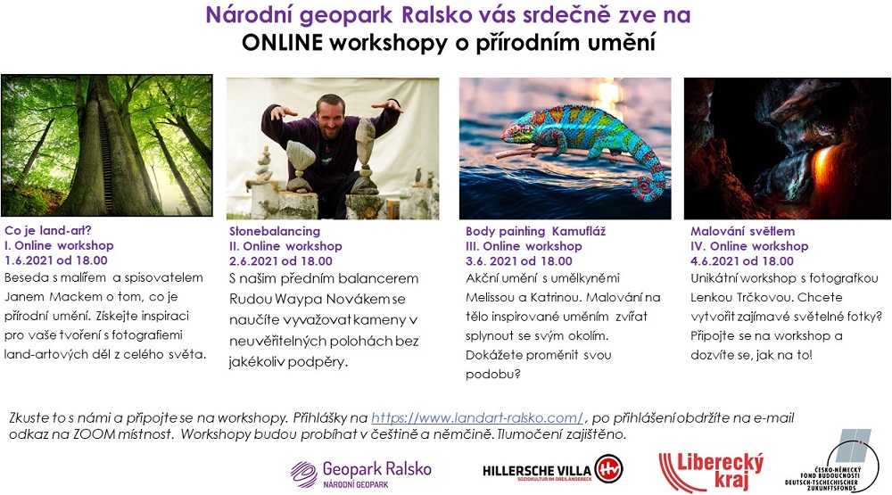 A jak to bude probíhat? Všechny informace jsou na webu projektu www.landart-ralsko.com. Po vyplněné přihlášky na workshop dostanou účastníci do e-mailu odkaz na místnost ZOOM a informace o tom, co si mají na dílnu připravit. V průběhu workshopu mohou debatovat, tvořit spolu s umělcem nebo sdílet svá vlastní díla.