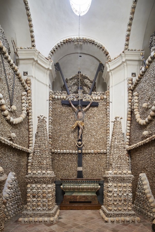 Kostnice v Kolíně je skromnějším protikladem známé sedlecké kostnice. Nikdy nesloužila návštěvníkům, nyní bude nově zpřístupněna veřejnosti. Kosterní výzdoba není replikou, pochází přímo z místního hřbitova. „Když byly v minulosti plné hřbitovy, vybraly se staré hroby, aby se uvolnilo místo na nové a nemusel se hřbitov zvětšovat. Většinou to bylo aktuální téma při epidemii nebo když se rušil starý hřbitov,“ přibližuje Jaroslav Svěrek, architekt a specialista obnovy památek ateliéru Masák & Partner.