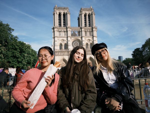 Do Paříže jsme dorazili kolem sedmé hodiny, kdy se město teprve probouzelo. Vzduch byl svěží, ulice ještě poloprázdné – a nad tím vším se tyčila majestátní Eiffelova věž. Někteří z nás si troufli vyjít schody, jiní dali přednost výtahu, ale všichni se shodli na jednom: ten výhled stál za to. „Tohle je fakt ono… Paříž!“ šeptla jedna z žákyň, zatímco se rozhlížela po městě zalitém ranním světlem. Následovala procházka kolem Invalidovny, kde odpočívá Napoleon Bonaparte, a dál ke katedrále Notre-Dame. Každý měl chvíli na vlastní objevování, a tak jsme se rozptýlili do uliček Latinské čtvrti. Vůně čerstvých baget, sýra a kávy se linula z malých kaváren, zatímco výlohy lákaly na makronky a další francouzské delikatesy. Večer jsme se přesunuli na ubytování – unavení, ale nadšení.