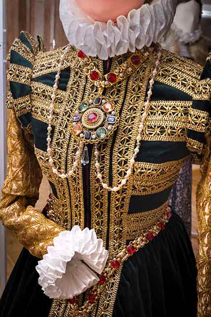 Součástí výstavy jsou repliky historických oděvů z 16. století, které vytvořila Martina Hřibová z Ústavu inženýrství polymerů Univerzity Tomáše Bati univerzity ve Zlíně. Návštěvníci uvidí šaty Jany z Pernštejna, svrchní oděv královny Anny Habsburské zvaný galerilla, českou a německou variantu španělské módy či například tehdy módní obuv na vysoké platformě. „Předlohou pro korkovou obuv potaženou brokátem zvanou chapines byl artefakt, který se nachází v kolekci londýnského Victoria and Albert Museum. U tvorby svrchního španělského dvorského oděvu zvaného galerilla byl předlohou portrétu královny Anny z roku 1570,“ vysvětluje Martina Hřibová.