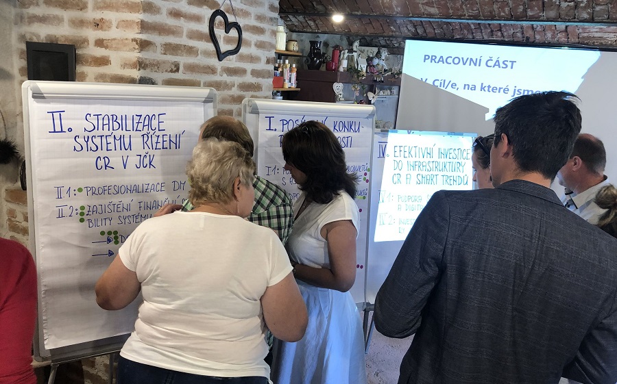 V plném proudu je nyní druhá, finální fáze příprav koncepce. V polovině září se v Hluboké nad Vltavou uskutečnilo první pracovní setkání s pěti desítkami pracovníků v cestovním ruchu, především podnikateli. Ubytovatelé, hoteliéři, cestovní kanceláře, zástupci půjčoven sportovního či turistického vybavení a další. „S podnikateli byl zahájen sběr podkladů formou dotazníkového šetření, ostatní účastníci byli rozděleni do čtyř skupin, ve kterých na základě podkladů z turistických oblastí finalizovali SWOT analýzu. Následovala prezentace upravené verze návrhové části, kde měli všichni možnost stanovit k jednotlivým aktivitám priority,“ sdělila manažerka JCCR pro koncepci cestovního ruchu v Jihočeském kraji 2021+ Monika Smetanová.