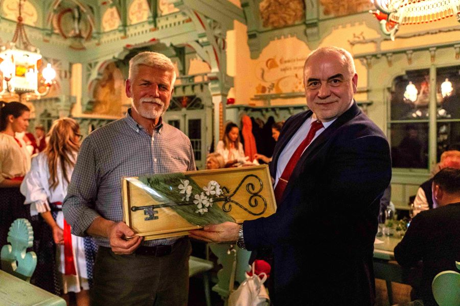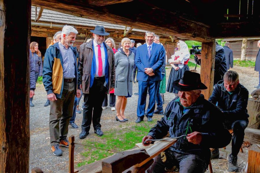 „Velice si vážím příležitosti přivítat na půdě Valašského muzea v přírodě prezidenta České republiky Petra Pavla. Prohlídkou areálu Valašské dědiny a Dřevěného městečka jsem panu prezidentovi chtěli představit živé muzeum navazující na odkaz předků a seznámit ho s jedinečným prostředím našeho muzea. Součástí setkání byla i návštěva Pusteven, kde jsem panu prezidentovi přiblížil historii Libušína a průběh jeho obnovy formou vědecké rekonstrukce,“ uvedl Jindřich Ondruš. Připravila Pavlína Polášková, foto J. Kolář.